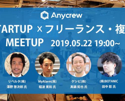 前回大変好評を頂いたスタートアップ企業とフリーランサー・複業ワーカーのミートアップイベントの第2弾になります。 東京近郊に御在住の方、また都内に出張のご予定のある方は、ぜひお越しいただければと存じます。 申込はになります!https://any-crew-002.peatix.com/ 弊社の事業の性質上、多くのクリエイターの方の力を必要としておりますので、多くの当日フリーランス、副業ワーカーの方々と巡り会いたいと思っておりますので、当日お目にかかれることを楽しみにしております! 〇弊社事業内容〇1.…