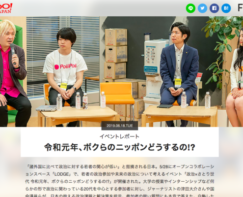 弊社のイベント制作事業として、「令和元年、ボクらのニッポンどうするの?」(ヤフー・ジャパン)の支援(ディレクション)をさせていただきました。 弊社にてイベント…